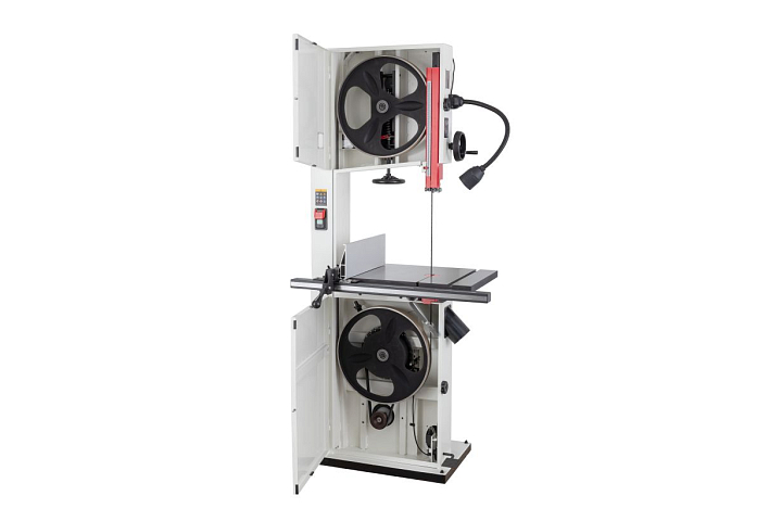 JET JWBS-18SFX-M 230 В – новинка 2025 г. Абсолютно новая ленточная пила для профессионального применения. Ее характеризуют несколько основных преимуществ. Это мощная, полностью сварная рама, большой чугунный, высокоточный рабочий стол, чугунные приводные шкивы компьютерной балансировки, возможность установки пильных полотен шириной вплоть до 32мм, система тормозов мгновенной, аварийной остановки пиления, быстрое ослабление пильного полотна для его замены. Все это очень важно тем, кому нужен универсальный, профессиональный станок. JWBS-18SFX может работать сутками напролет. Параллельный упор тоже объединяет несколько преимуществ. Направляющий профиль может быть установлен в обеих плоскостях, вертикально или горизонтально. Это позволит с комфортом работать над высокими и совсем тонкими заготовками. Высота самого профиля обеспечит комфорт при пилении больших деталей. Квадратная, толстостенная труба в основе направляющей даст нужную жесткость конструкции упора целиком.