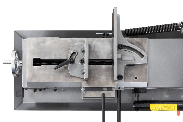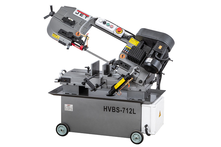 Ленточнопильный станок HVBS-712L является представителем линейки моделей американского типа, с поворотными губками тисков. Станок используется для работы как в небольших мастерских, так и на производстве с подключением к сети 230В. Конструкция ленточнопильного станка позволяет осуществлять распил круглых металлических заготовок под прямым углом, максимальный диаметр которых составляет 178 мм, под углом в 45° - 127 мм. Смена позиции заготовок для определения угла распила, осуществляется путем переустановки губок механических тисков в необходимое положение. Угол распила определяется в соответствии с делениями шкалы.